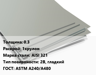 Лист нержавеющий 0.3 1хрулон Сталь: AISI 321 Тип:2B, гладкий ASTM A240/A480, шт цена от 449 565 ₽ / т, где купить, условия доставки в Санкт-Петербурге и Ленинградской области